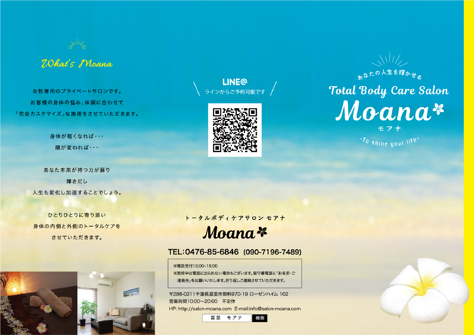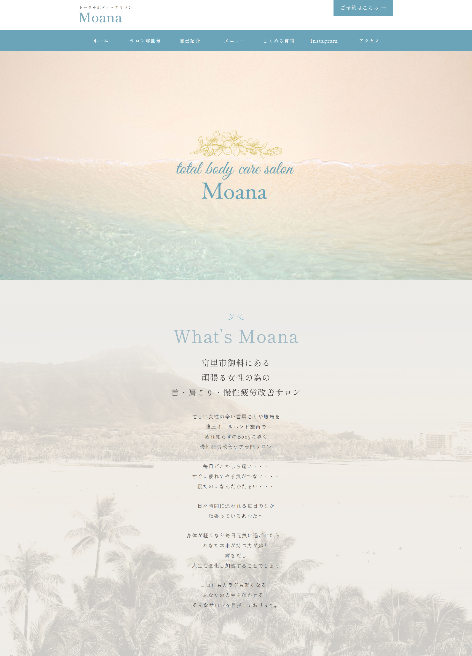 色・写真・言葉選びを揃えることで、「Moanaといえばハワイのマッサージ」という
